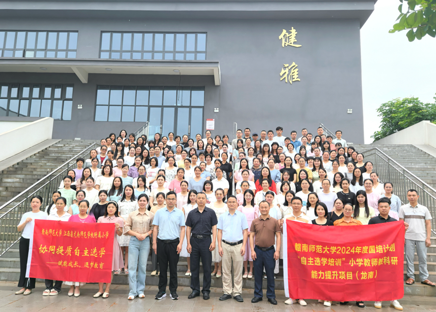 2025年5月18日上午,赣南师范大学2024年度国培计划“自主选学培训”小学教师教科研能力提升项目(龙南市)培训班在江西省龙南师范学校附属小学龙翔校区正式开班。德赢vwin8868官网院长、教授邱小健,赣南师范大学教授曾素林,龙南市教育事业发展中心主任陈小波,江西省龙南师范学校附属小学党总支书记叶智福、校长曾素芳出席开班仪式。龙师附小集团校196名教师参加此项目培训。开班仪式上,邱小健院长介绍了赣南师范大学的基本情况,解读了本次培训的目标和方式。同时,他勉励参训教师在共学共研中破解教科研难题,创造性地解决教育教学现实问题,推动学校教育教学质量提升。