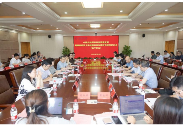 赣南师范大学校长陈义旺在总结讲话中指出,教师是教育发展的第一资源,师范院校是教师教育的主力军。赣南师范大学始终高举师范旗帜,认真履行教师教育主责主业。中国式现代化背景下要进一步思考如何培养高质量的教师队伍来服务地方基础教育发展。如创新人才培养模式,以工程思维来办师范教育,充分利用人工智能等现代技术赋能教师教育;要充分利用好教育部师范教育协同提质计划,以此次教师教育专项研究为抓手,全面推进学校教师教育研究与实践,不断增强服务革命老区基础教育高质量发展的支撑力、引领力和贡献力。学校党委常委、副校长罗序中主持项目研讨会,教务处、发展规划处、党委(校长)办公室、科研处、人事处、计划财务处等职能部门领导、赣州市基础教育一线专家学者参加会议。