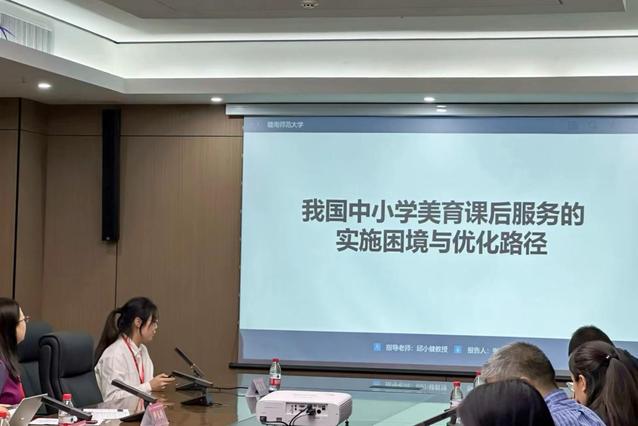 会议分为大会主题报告和专题会场。10月14日,邱小健院长作为主持人,主持了第九专题会场报告会,并对各位报告人的汇报内容进行点评。2022级教育学专业研究生张雅芬在第三专题会场做了题为“我国中小学美育课后服务的实施困境与优化路径”的报告。该报告对于美育课后服务进行了概念界定,重点分析了美育课后服务的价值意蕴、实施困境和困境归因,并提出了建立美育课后服务标准、加强美育师资培养和扩大教育经费支持等优化路径。