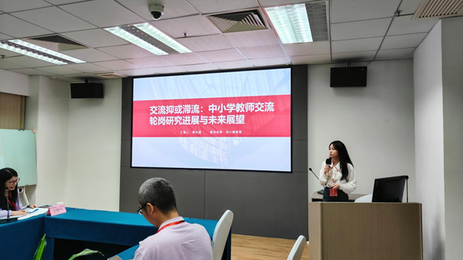 2023级小学教育专业研究生黄乐娴在第六专题会场做了题为“交流抑或滞流:中小学教师交流轮岗研究进展与未来展望”的报告。该报告对2014-2023年关于中小学教师交流轮岗的研究文献进行了分类综述,从价值阐释、影响因素、现实困境以及优化策略四个方面对中小学教师交流轮岗问题进行了回顾与反思,并对如何推进中小学教师交流轮岗研究进行了展望。报告获得了与会专家的高度好评,彰显了研究生群体在教育研究领域的积极探索与创新能力。