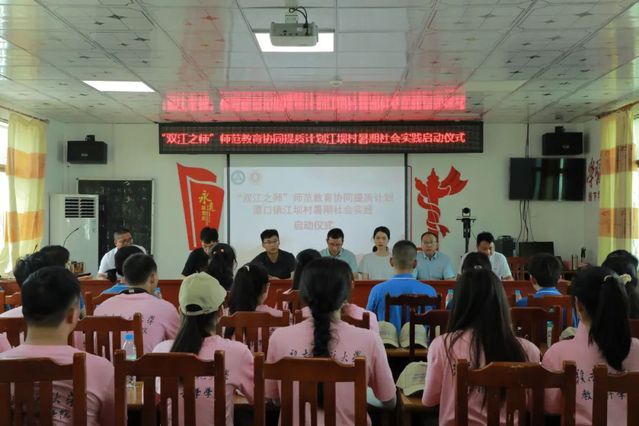 为落实教育部“师范教育协同提质计划”相关要求,7月7日,坐落于赣江之滨的赣南师范大学与位于黄浦江畔的华东师范大学携手共望,在潭口镇团委、德赢vwin8868官网团委、华东师范大学孟宪承书院团委和江坝村新时代文明实践站联合组织下开展的“双江之师”师范教育协同提质暑期社会实践启动仪式在江坝村村委会举行。潭口镇党委副书记刘林、华东师范大学孟宪承书院团委副书记王盼琛、江坝驻村第一书记万金生、村党委书记赖春雷、江坝小学校长钟厚荣、两所学校相关师生和全体江坝村干部共计50余人参加仪式。